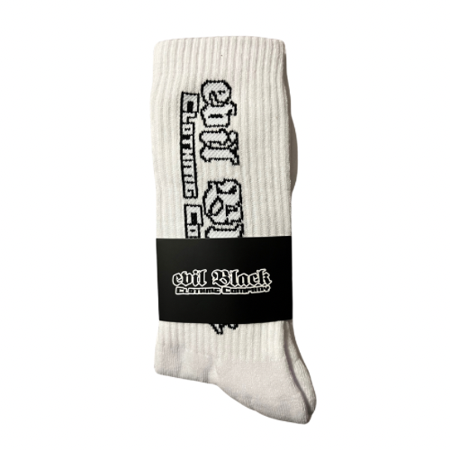 Available in clean white or bold black, these Crew socks are comfortable & light weight and are a must have staple for your Evil Black Clothing wardrobe. With the corporate logo emblem running vertically up the side of the sock, it makes a statement that you are down with the EvilBlack crew all the way.