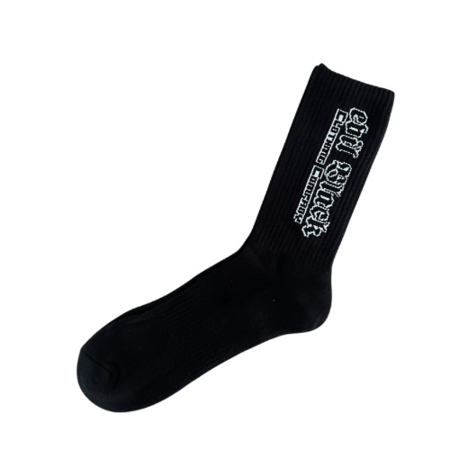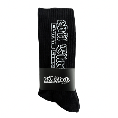 Available in bold black or clean white, these Crew socks are comfortable & light weight and are a must have staple for your Evil Black Clothing wardrobe. With the corporate logo emblem running vertically up the side of the sock, it makes a statement that you are down with the EvilBlack crew all the way.