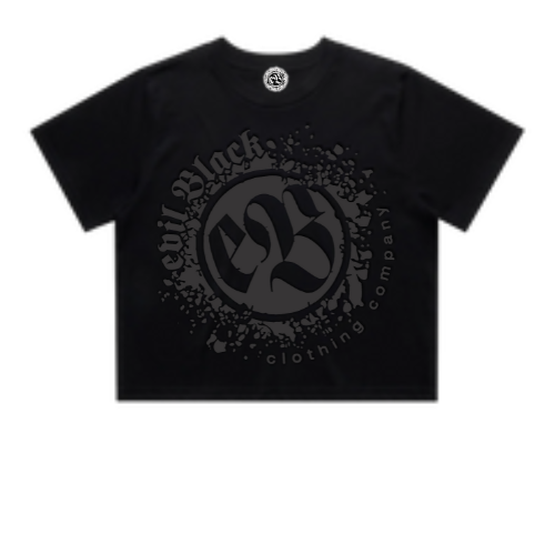 Introducing the Women's Black on Evil Black Crop Tee from Evil Black Clothing Company—a sleek essential for those who live loud but keep it effortlessly cool.